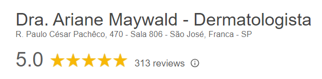 Comecei meu tratamento com a Dra. Ariane Maywald já faz mais de 3 anos, continuo até hoje! Ela sempre atenciosa, carinhosa e sempre tirando as dúvidas dos pacientes, e as meninas que trabalham com ela são maravilosas. Sabe aquel ditado" Tenha uma dermatologista para chmar de seu" hoje posso confirmar isso!